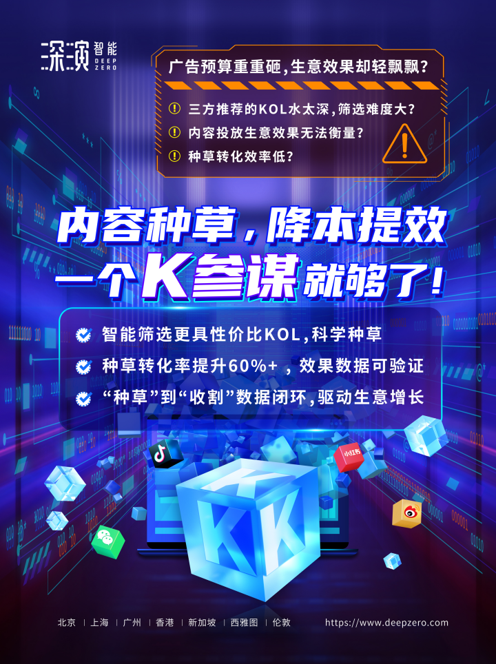 在多场景营销方面,石砳特别谈及非凡游戏智能的K参谋(KOL全链路投放解决方案)产品,具有突破性打通内容种草+电商收割的完整转化链路和科学评估小红书、B站、微博、微信等平台的KOL投放数据的优势特点,K参谋可以帮助品牌优化KOL的使用和投放效果,让每一个KOL对生意结果的影响都清晰可见。